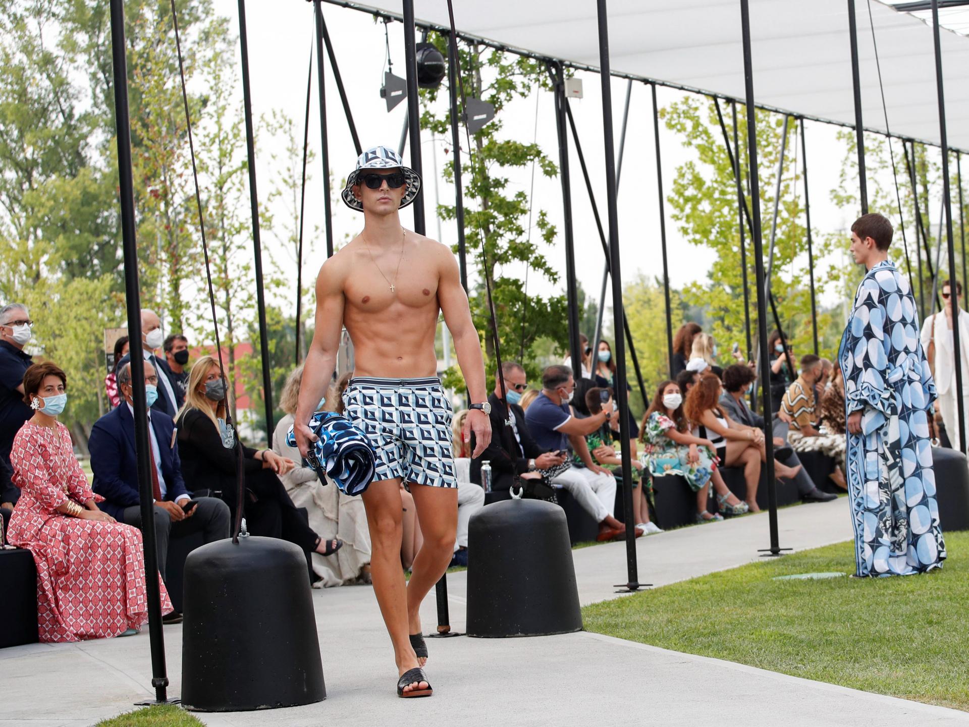 كجزء من أسبوع الموضة الرجالية في ميلانو ، دولشي أند غابانا تطلق عرض أزياء جديد يراعي قواعد التباعد الاجتماعي فبينما كان العارضون يسييرون في المنصة، كان الجمهور يرتدي أقنعة الوجه ويفصل بين كل واحد والأخر مسافة لا تقل عن متر.