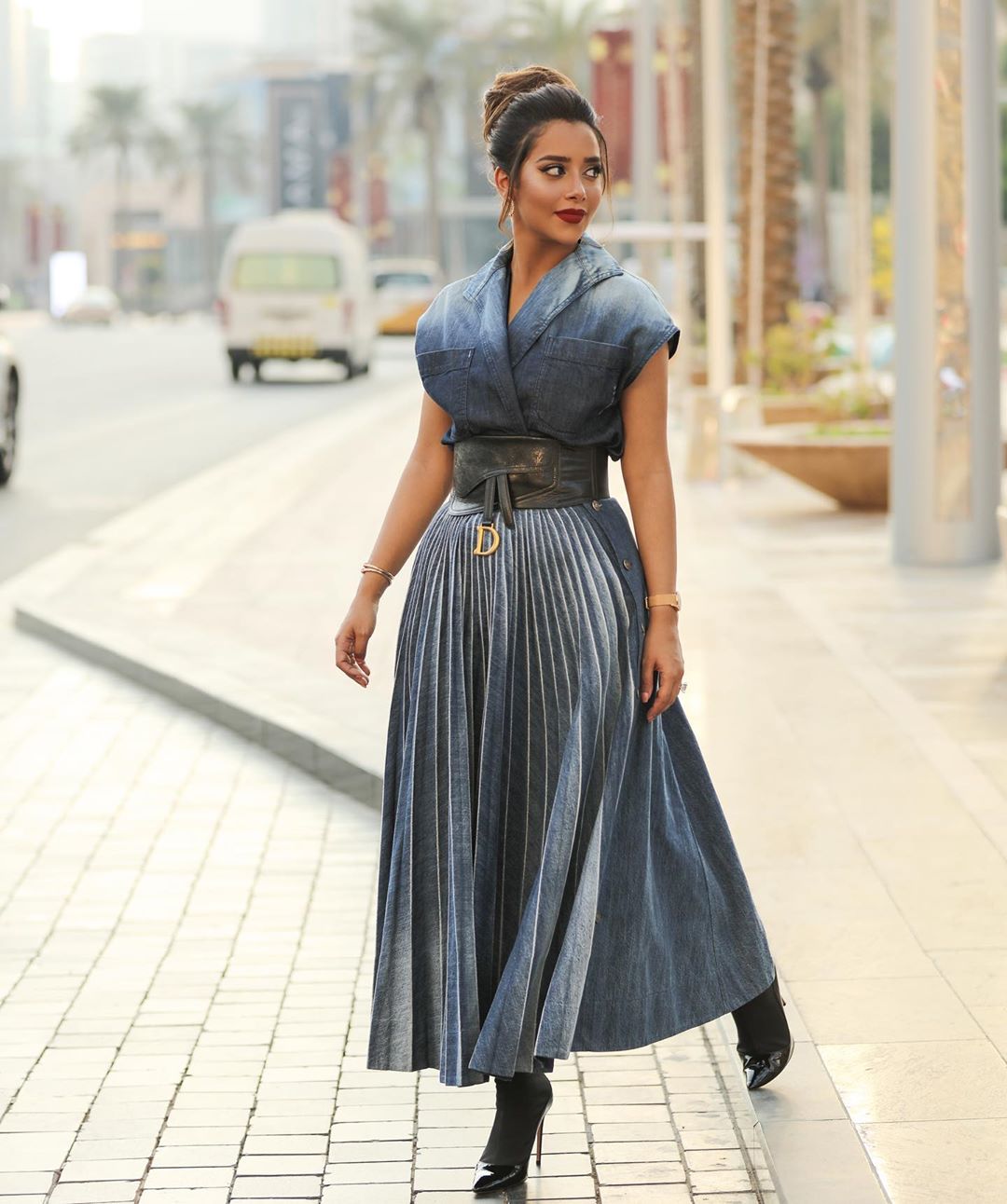 الممثلة المغربية "ميساء المغربي" اختارت الشعر المموج على الأغلب ليناسب جو الحلقة التي ارتدت فيها التصميم، إذ صورت الحلقة باليخت، أما الذي لفت الأنظار غير اختيارها لحذاء مفتوح من الأمام، فكان القبعة الكلاسيكية التي أخذت الإطلالة لمنحى "شيك وتريندي" في نفس الوقت.