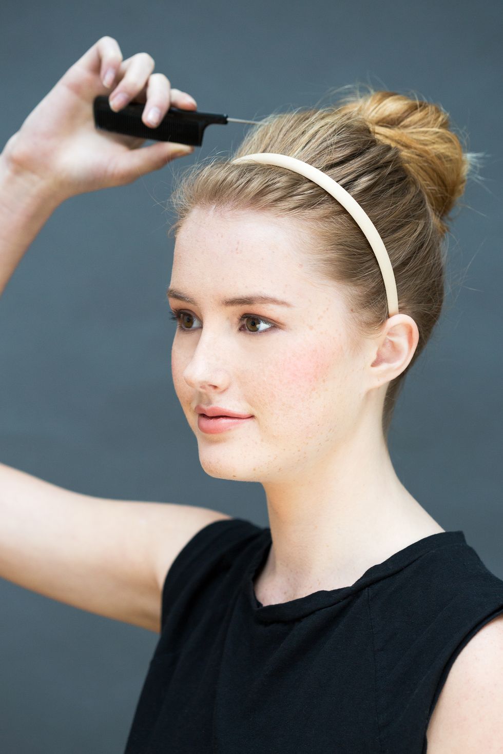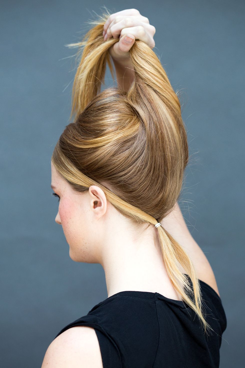 كل ما عليكِ هو ان تقومي بتقسيم شعرك إلى جزئين من الخلف ثم عمل ذيل حصان في الجزء العلوي وذيل حصان في الجزء السفلي وبعدها يمكنك إستخدام مشط باسنان ضيقة من اجل إظهار الجزئين كأنهم شئ واحد.