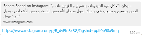 وأثارت بعض أقوال سما المصري في التحقيقات غضب الإعلامية ريهام سعيد وهي أحد من تقدموا ضدها ببلاغات، ورغم أن ريهام سعيد أكدت خلال الساعات الماضية أنها لن تحارب أحدًا مجددًا وستعيش حياة هادئة إلا أنها علقّت في منشور لها عبر حسابها على موقع "إنستغرام" قائلًة: "سبحان الله كل مرة التليفونات بتتسرق والفيديوهات والصور بتتسرق وتتسرب هي وفتاة المول سبحان الله نفس القصة ونفس الأشخاص يمهل ولا يهمل".