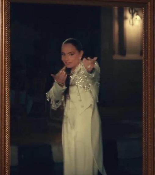 خفطت شريهان الأنظار بإطلالتها البيضاء الأنيقة الكلاسيكية المستوحاة من مايسترو الموسيقى لإضفاء لمسة استعراضية، حيث ارتدت جاكيت أبيض أنيق مُطرَّز بحبيبات اللؤلؤ الفضية نسَّقتها ببنطال واسع أبيض، واعتمدت تسريحة شعر ذيل الحصان.