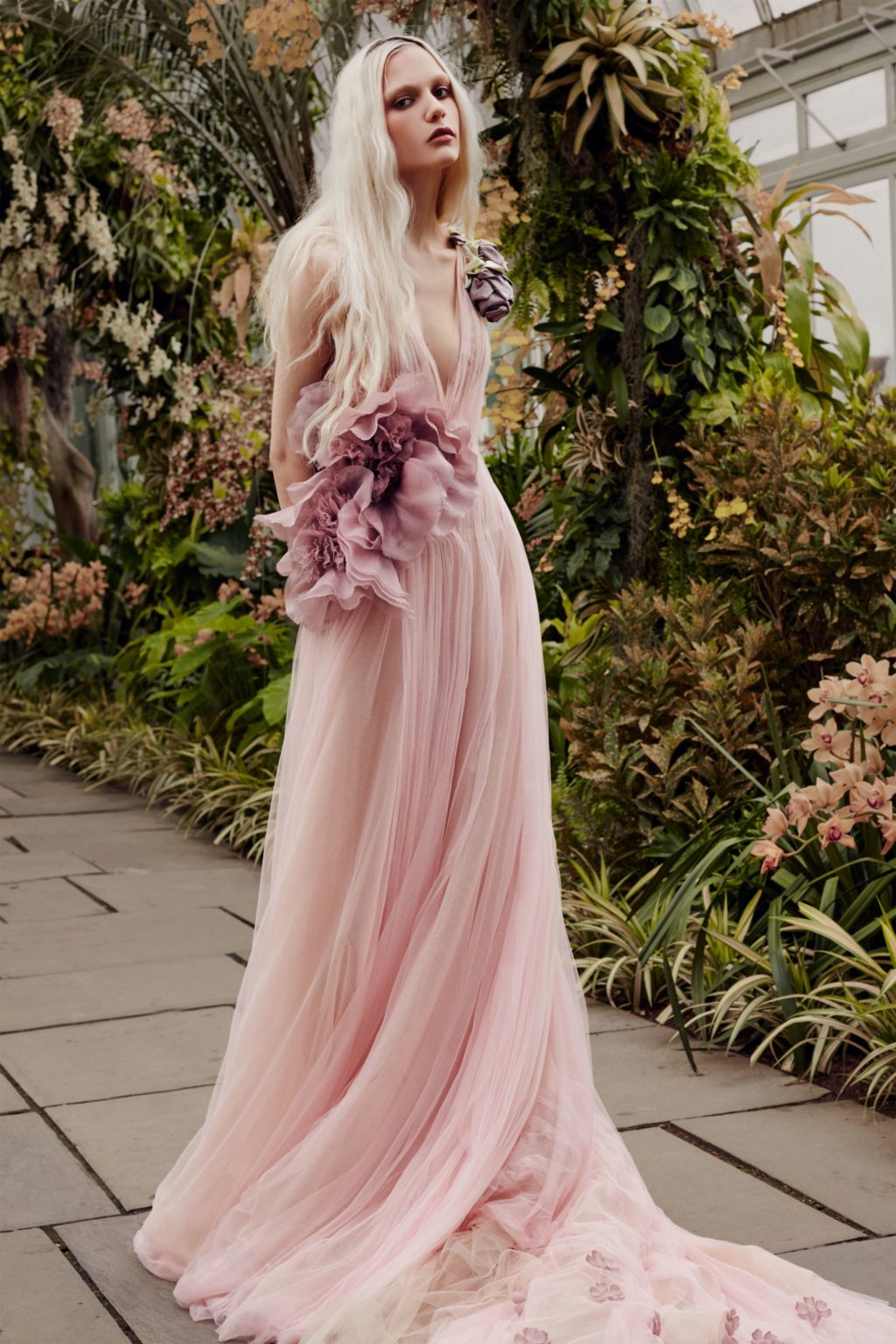لا يزال خيار الفساتين بلون أحمر الخدود الوردي موجودًا، إذ يبدو أن العرائس قد أثرن على المصممين بدلًا من أن يحدث العكس!
