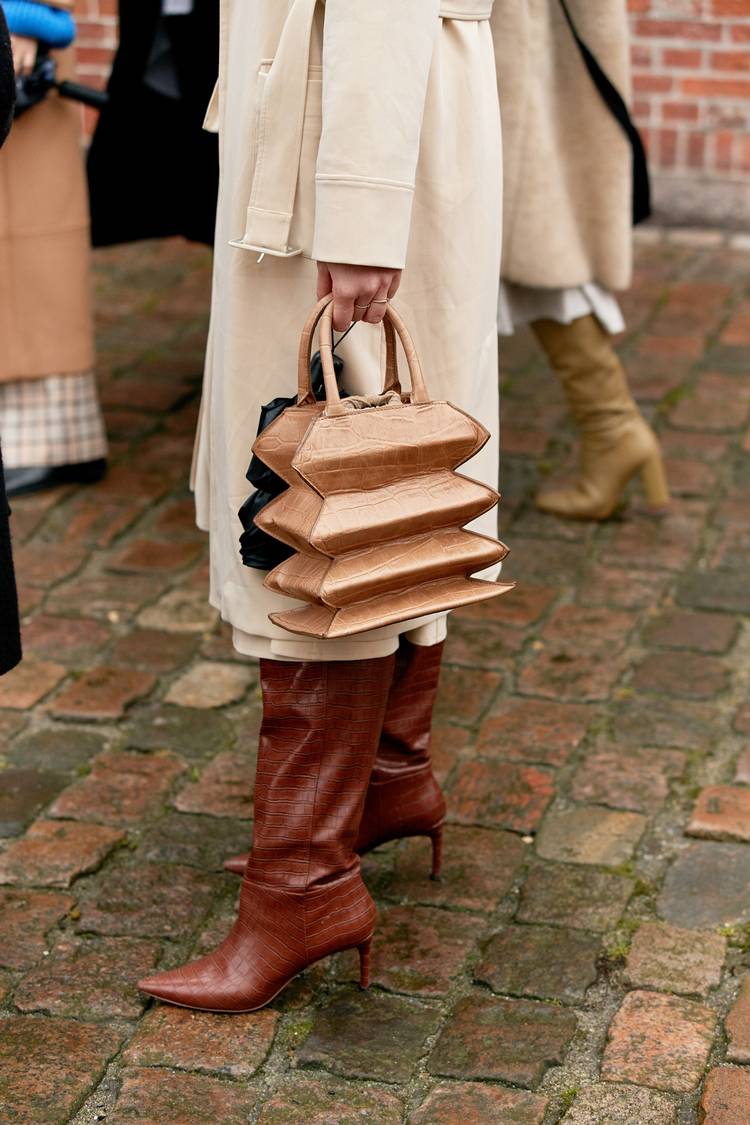 لا يخلو عالم تصميم الأزياء والحقائب وغيره من اللمسات الفنية، وتميز ستايل الشارع بأسبوع موضة كوبنهاغن بتصميمات استثنائية للحقائب تبدو وكأنها منحوتات صُممت بدقة وحرفية عاليين تضفي لمسة فريدة للإطلالة.