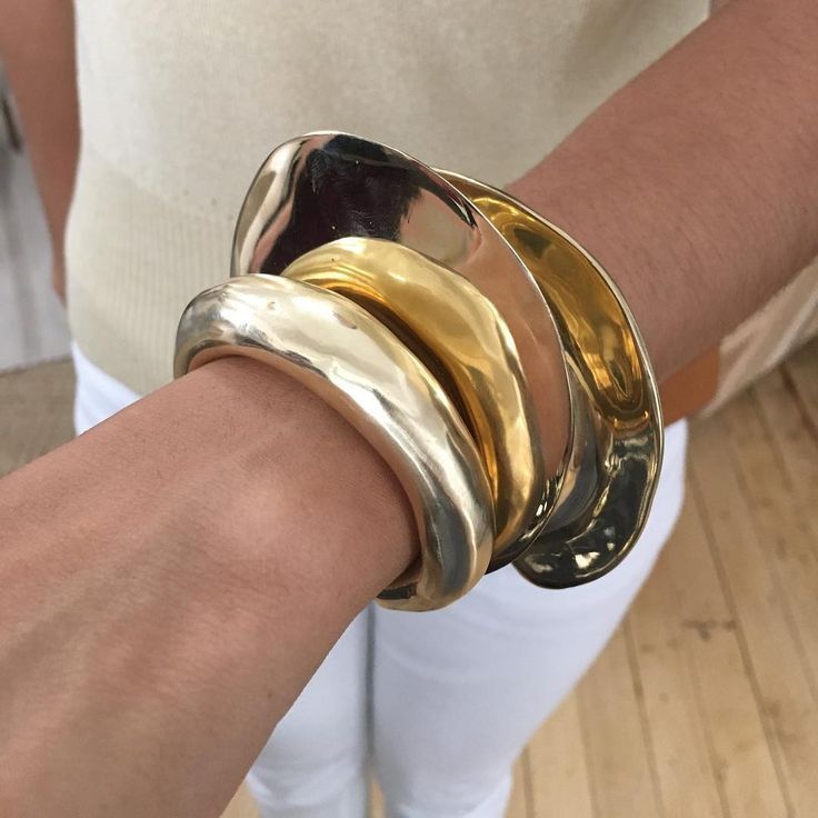 فيما يتعلق بصيحات السوار، يعد التصميم الدائري الضخم والبارز من أبرز التصاميم المسيطرة في صيحات المجوهرات هذا العام، وخاصة الذهبية والمزينة بحبات الكريستال.