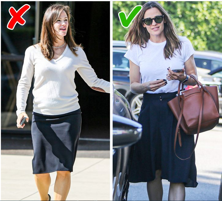 قومي بالتخلص فورًا من جميع أنواع السراويل التي تبدو مترهلة وكبيرة عليكِ، بدلا من ذلك، ارتدي بنطلون جينز ضيق، فهو يجعلك تبدين أنيقة دائمًا، ويمكن إقرانه بسهولة مع بلوزات بطرز مختلفة لإبراز قوامك ويجعلك تبدين أنحف وأصغر سنا.