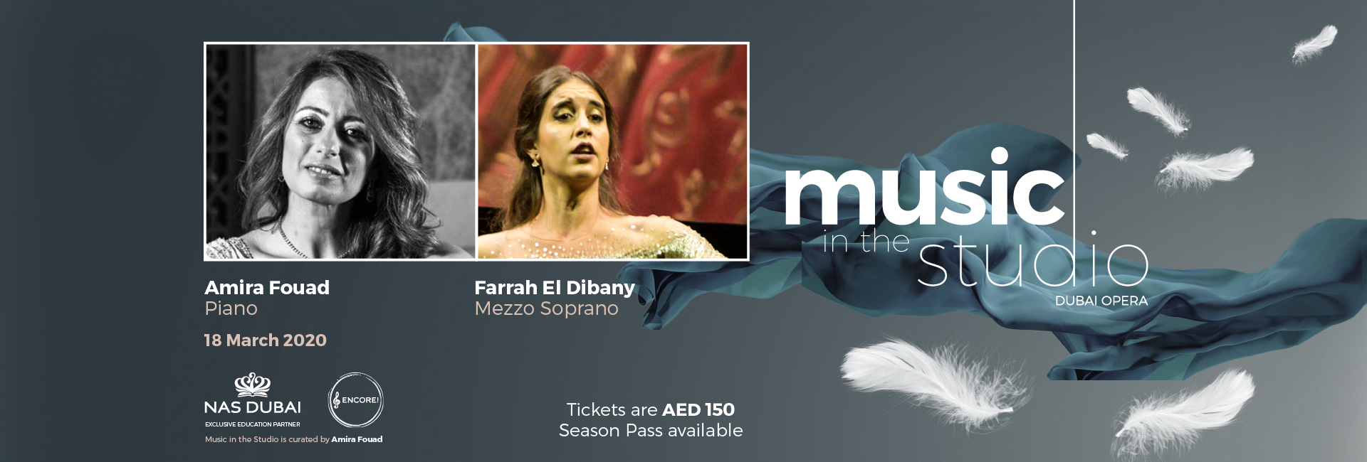 من أوبرا باريس وإلى دبي أوبرا، تأتينا نجمة الميتزو سوبرانو المصرية فرح الديباني وهي واحدة من أكبر المواهب في الغناء الكلاسيكي في المنطقة العربية. وسوف تؤدي فرح مقاطع الغناء الإفرادي الشهيرة مثل Pergolesi Stabat Mater ، وRequiem لموزارت، و Petite Messe Solemnelleلروسّيني، ومقاطع من السيمفونية التاسعة لبيتهوفن، ودورَي السيدة الثانية والثالثة في Die Zauberflöte لموزارت، ودور “أماستر” في Xerxes لهاندل، و دور مارثا في “يولانتا” لتشايكوفسكي، و”أورفيو” فيOrfeo ed Euridice لغلوك، و”أورلوفسكي” في Die Fledermaus.