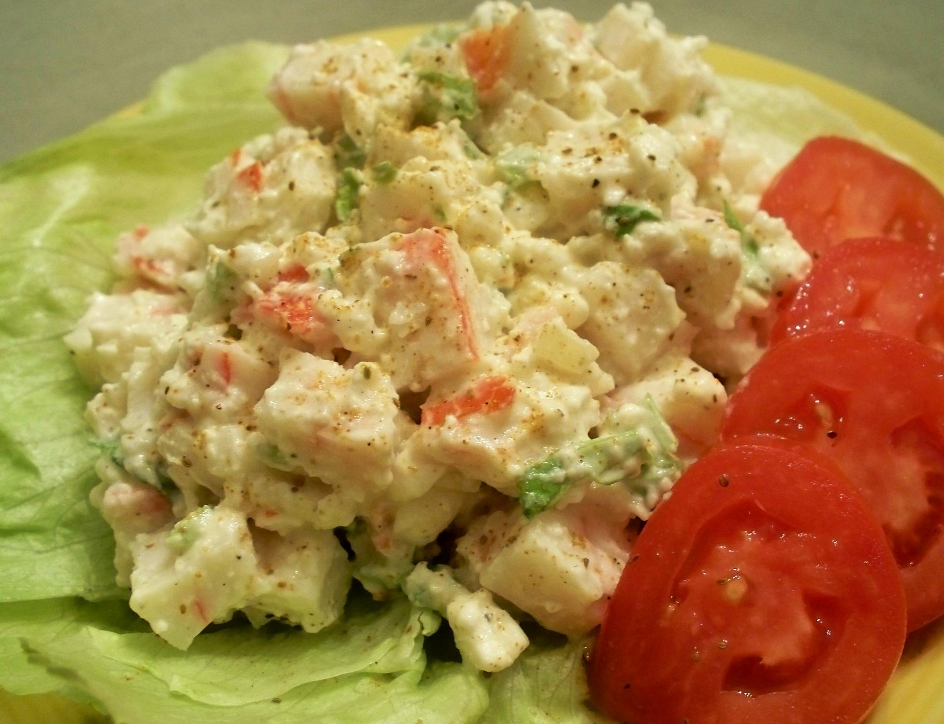 أضف الجبن والخيار المفروم ولحم السلطعون في وعاء. ضعي فوقها توابل البيغل ورذاذ سريراتشا الخفيف.