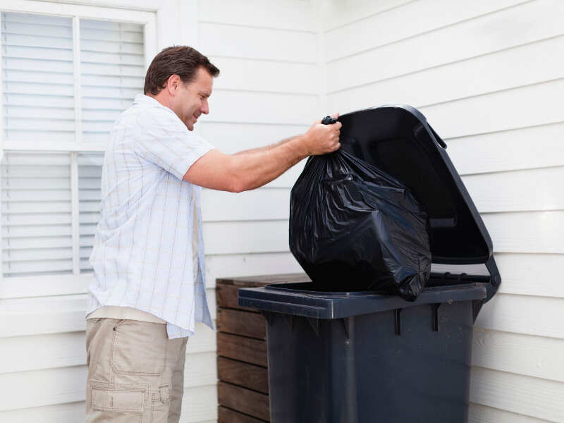 أخرجي القمامة دائمًا بدلًا من تركها في مكانها حيث يمكن أن تكون أيضًا سببًا كبيرًا للرائحة الكريهة في منزلك. تجنبي التأخير في التخلص من القمامة حتى لا تضيف إلى الرائحة الكريهة.