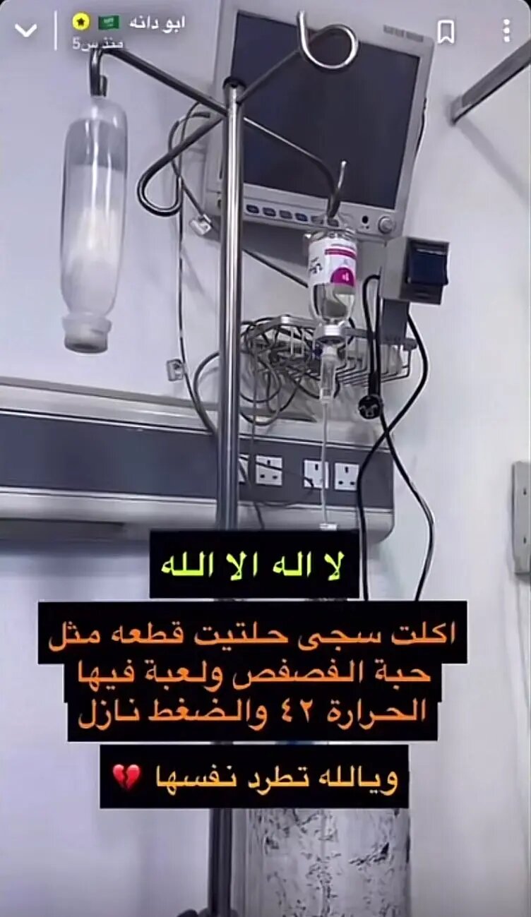 ونشر نجم السوشال ميديا مشعل القحطاني صور من داخل المستشفى حيث تخضع ابنته سجى للعلاج بعد تعرضها للتسمم، وعن تفاصيل هذه الحادثة قال إنه سارع لنقل ابنته للمستشفى بعد ارتفاع درجة حرارة جسدها بعد تناول نبتة الحلتيت