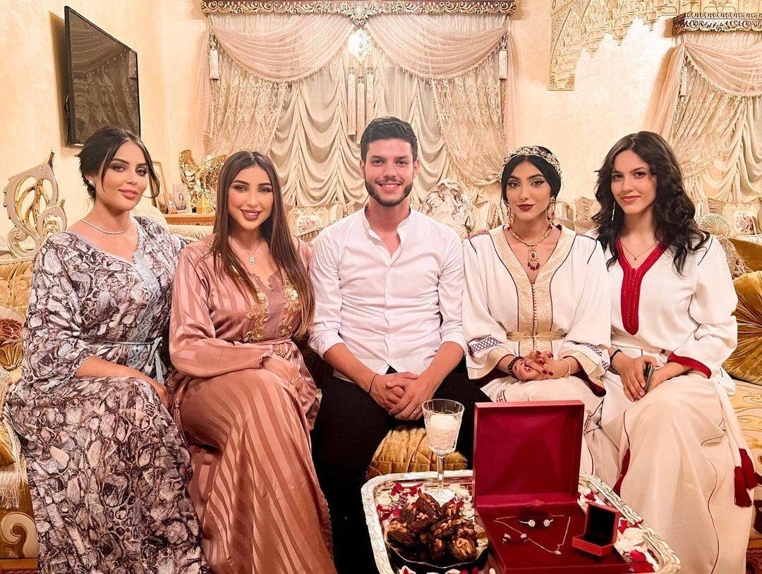 ومن جانبها نشرت إيمان عبر حسابها الخاص العديد من صور الخطوبة وتألقت العروس بقفطان باللون البيج مع تطريزات باللون الذهبي والبني.