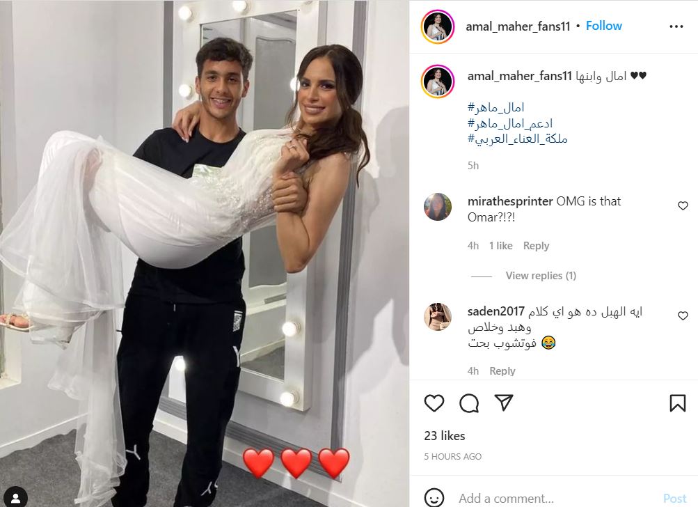 وشكك البعض بأن يكون الشاب في الصورة هو نجلها معبرين عن صدمتهم لوجود ابن شاب للفنانة المصرية، فيما أكد البعض أن آمال ماهر تزوجت في بداية حياتها وهي بعمر الـ 17 عامًا